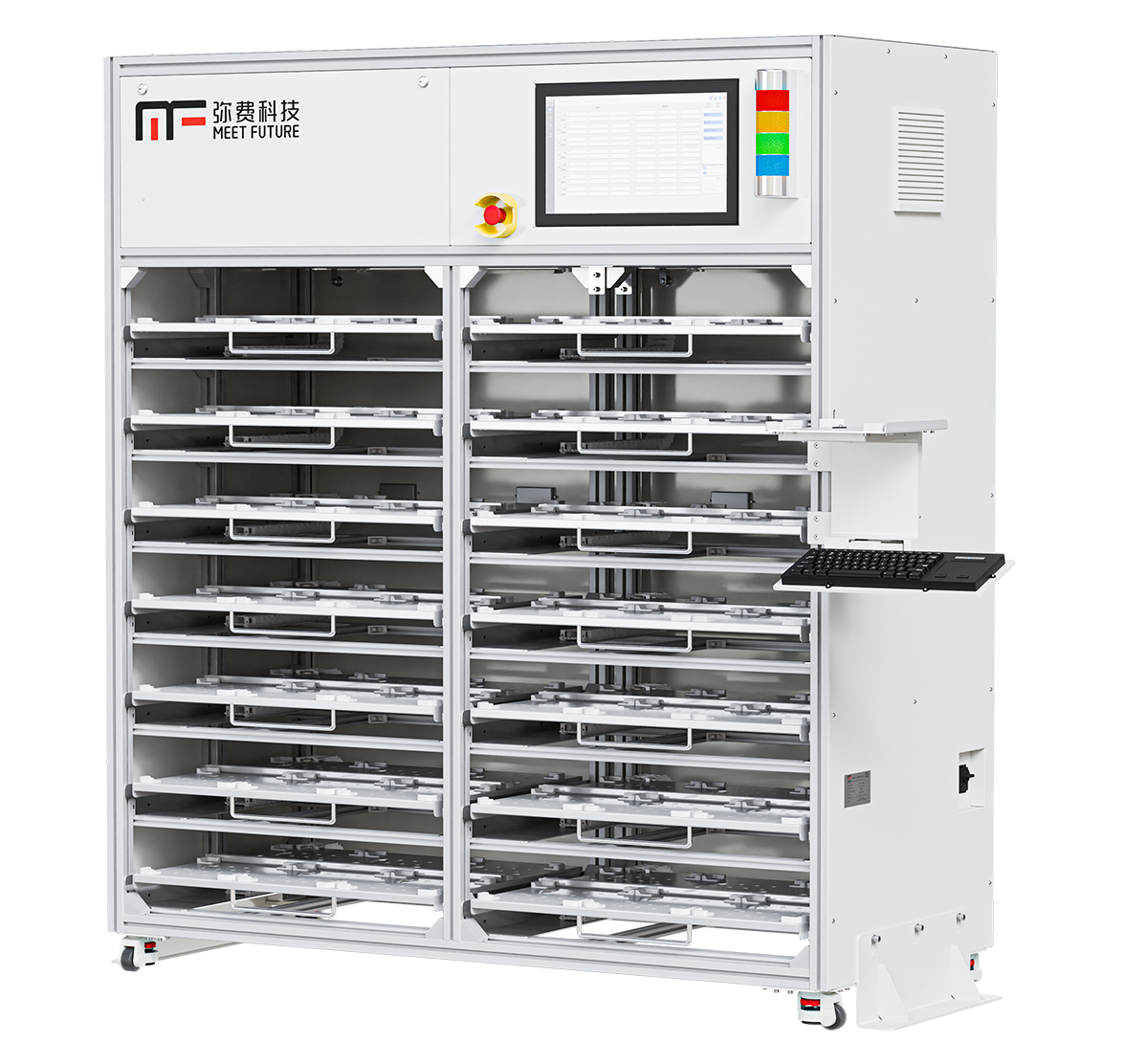 ▪ The MeetFuture intelligent storage control system utilizes an advanced intelligent algorithm to optimize instruction execution and materials management logic in the storage library. This results in shorter access and handling times for wafer cassettes, thereby increasing the frequency and utilization efficiency of the storage library.